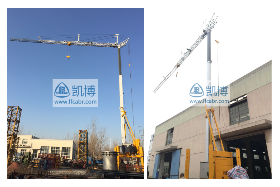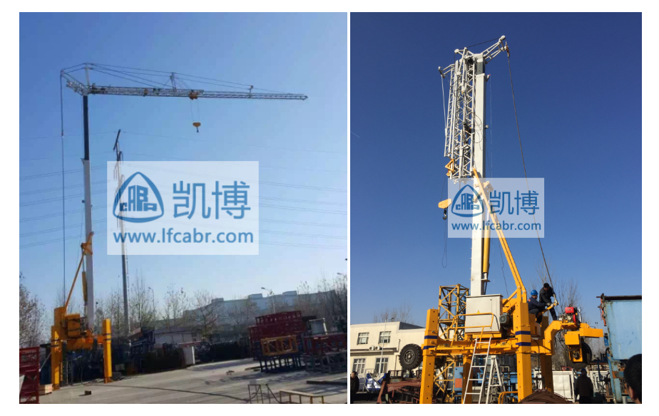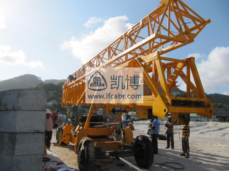 快速架設,一個小時即可投入正常工作。結構緊湊,可整體拖運。塔身自動鎖緊,臂架自動對接,臂端滑輪自動定位,全部架設和拆卸過程無一處高空作業。